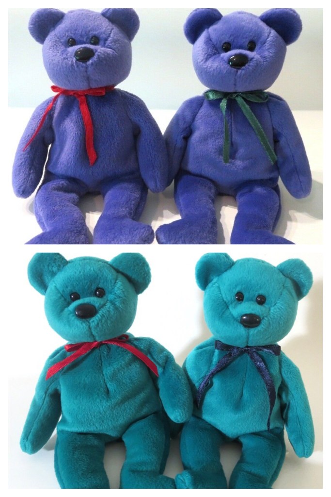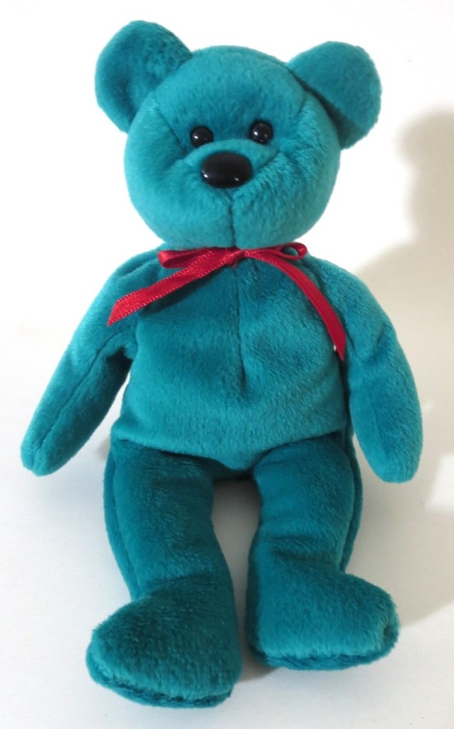 Thought you had Ty all figured out eh? The creation of alternate Billionaire #1 bears for his other main territories was actually a practice Ty already had in place beginning with his Ty Employee Teddies. A quick recap – Ty gave out his US Employee Teddies on September 13th, 1997 during their Odyssey cruise. Only 300 examples were made – 150 with green ribbons, and 150 with red ribbons. No swing tags attached. Special magenta stitching used on these bears, and they have 2nd generation red and white tush tags (dated 1993 or 1995).