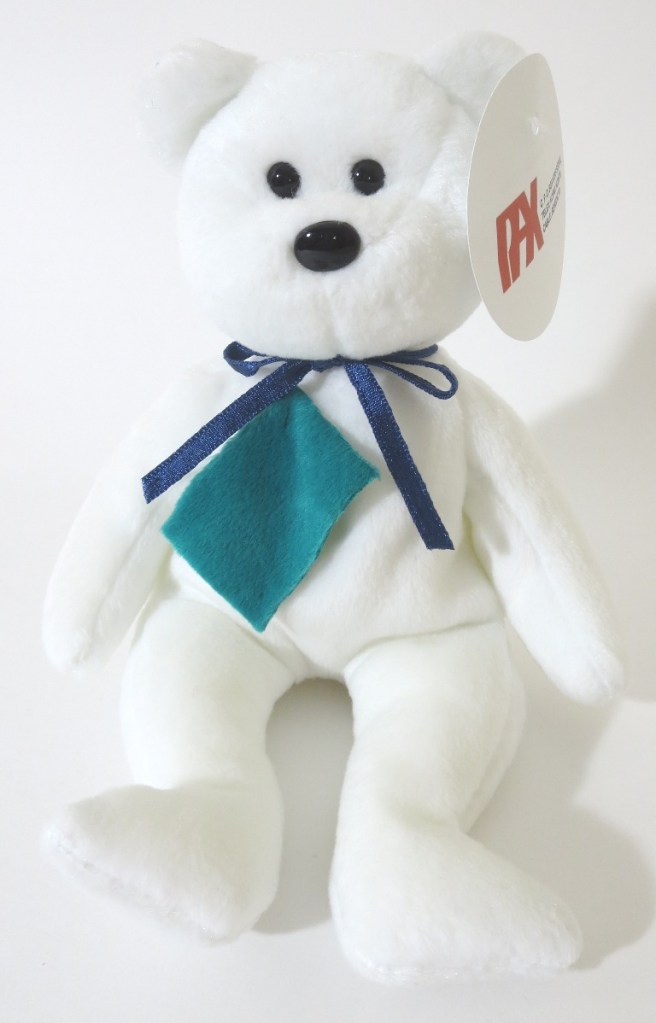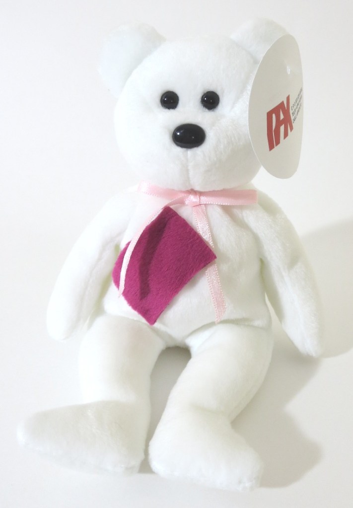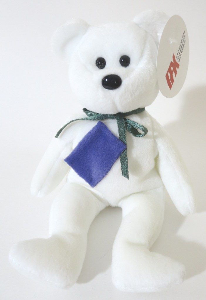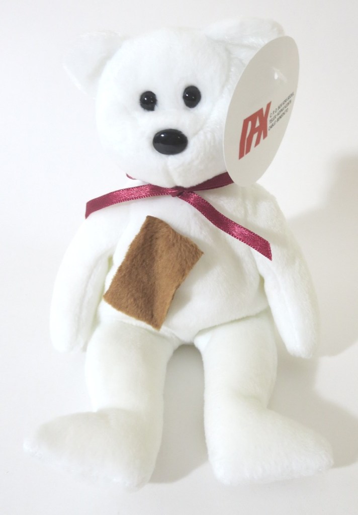 Believe it or not, this was an extremely challenging set to confirm existed – much more so than unproduced colors and the old face set. Ty made a number of teddy prototypes over the years – but THESE are the original prototypes for the production New Face colors. They are the counterparts to the old face white teddy set from our previous post. We have included a few group shots with both sets paired together. These guys have the exact fabric color patch seen on their production examples, and have the correct corresponding ribbons. Complete/mint pax hang tags and tush tags