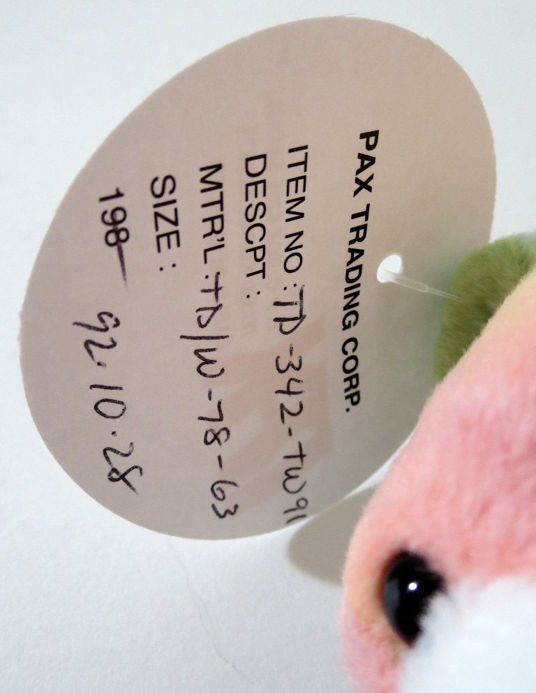 Rarity Rank: -.5. We mean, check, check, check! A full departure for an iconic/rare 1st generation style that is WAY outside of the box in beloved tie-dyed fabric. Early 1992 pax dates. This piece is extraordinary. The fact that its counterparts survived really help place this piece in its particular storied prototype history. Another piece kept locked away with a Ty Executive.