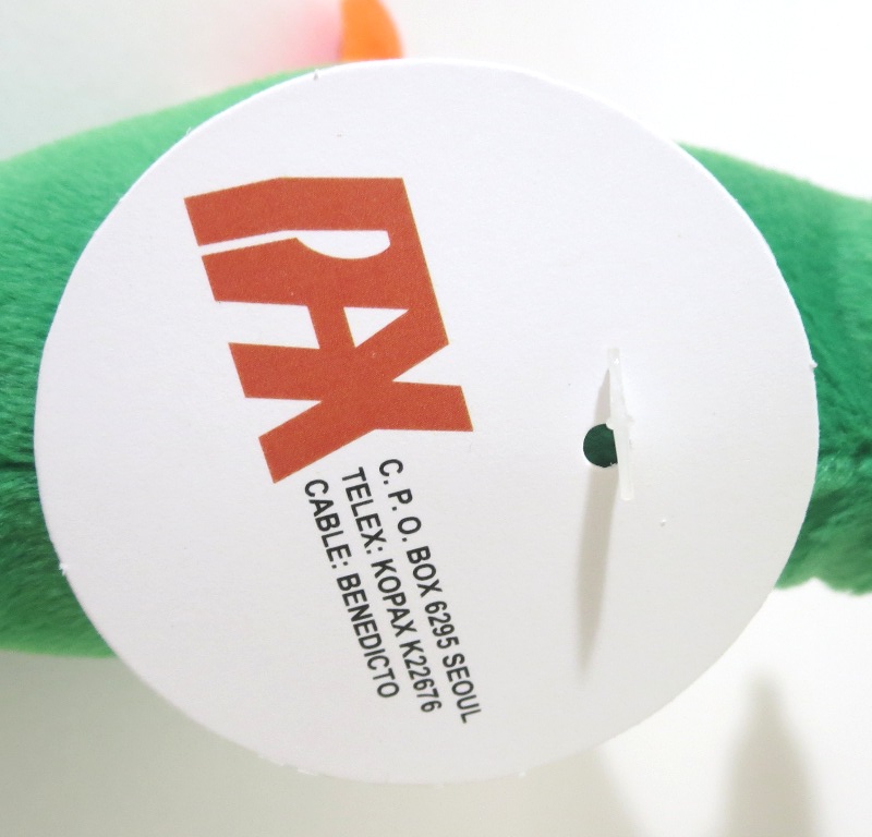 We just reviewed the sister prototype to this insane wingless Quackers prototype. All of the previous comments apply to this piece as well. Original 1992 prototype for one of the most coveted original 1st generation styles in the entire hobby. Now, the true kicker on this piece, is its fabric. 99.9% of the color variations we see for original prototypes used one of Ty’s base fabrics, that we eventually see used on one piece or another. This shade of green fabric we never saw on any of the original pieces. We’ll call it a Spring Green – though we’re sure there is a more fitting shade to call it. The piece actually reminds us a bit of the mint green counterfeit quackers that floated around for years. Funny to think Ty was actually considering doing the piece originally in a form of green.. See photos below. This green fabric is very distinct from the “Legs” green fabric we have seen and come to know. What an incredible color! Totally unique.