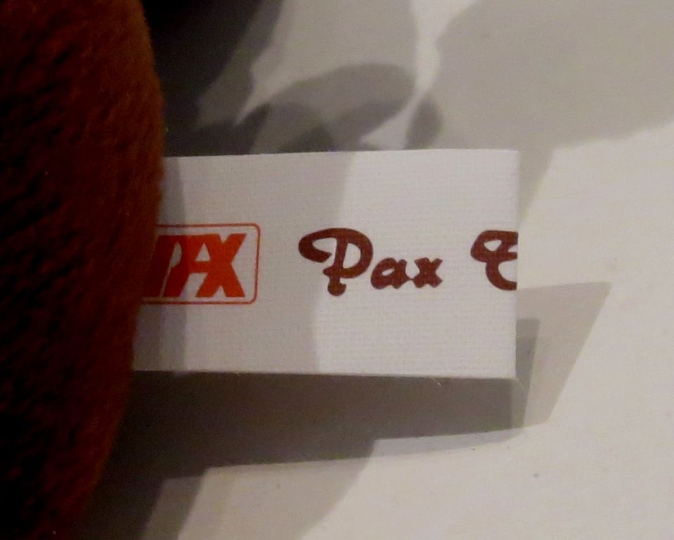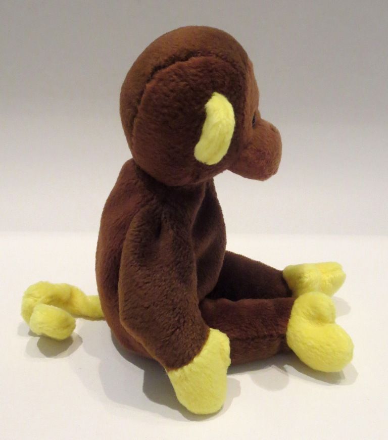 Are you on the Nana train yet?:). This spectacular Nana prototype is has a solid chocolate brown body, a slightly lighter chocolate face, and yellow/pastel yellow ears, hands, feet, and tail! The piece is also complete with pax tush tag. This Nana you may have noticed is missing its hang tag – typically only seen with “Tyriffic Nana” prototypes. But this is in fact the famous Ty Canada Nana – one of the precious few prototypes that ended up with Bill Harlow. The piece was featured in several beanie publications (see photos below). This is the only Nana prototype to be discovered with chocolate brown fabric. Very striking!