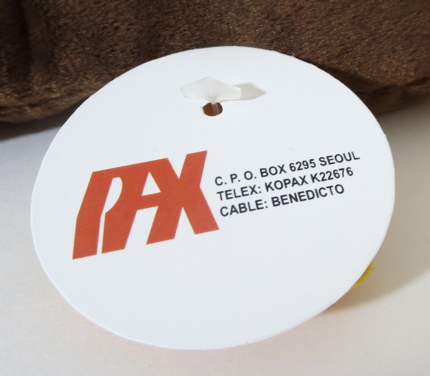 This is the counterpart to the recently reviewed solid RED Patti the platypus original 9 prototype. This Patti is SOLID CHOCOLATE BROWN! This sibling also has an incredibly early and matching 5/19/92 pax dated tag, and perfect pax tush tag – putting it on the earlier end of true original 9 (original 2) prototype dates. Shades of Patti fabric variations can be quite rich, indeed. Why this full chocolate brown departure is lovely and such an incredible discovery. This is the same shade of fabric we have seen on the production original 9 Chocolate the moose!