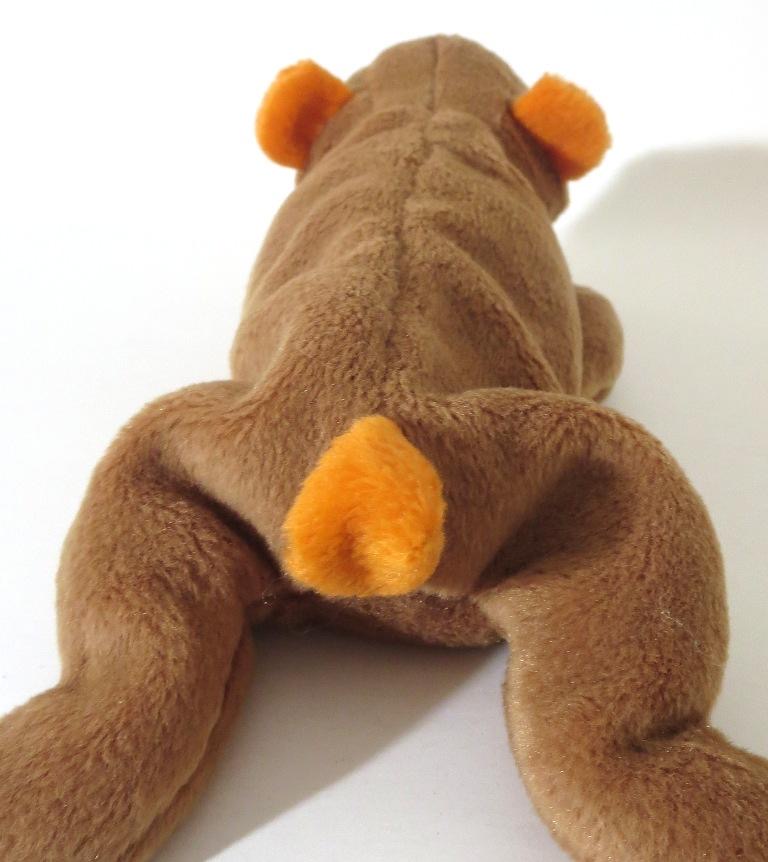 Brownie (Cubbie) – this guy has orange fabric for his ears, nose, and tail! Production honey brown fabric and brown nose. An early 2003 authentication date!