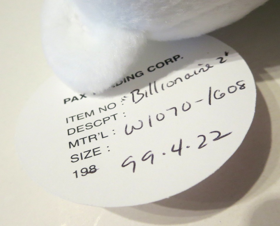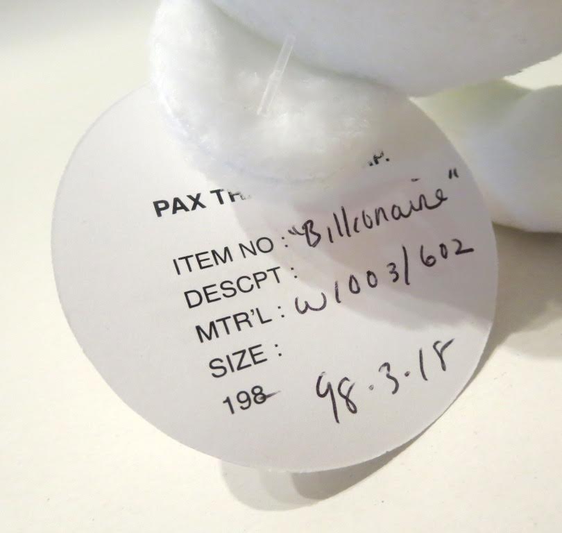 Rarity Rank: -.75 to -1. These bears are incredibly special. Full departure prototypes for the original Billionaire Bears, that scream ‘Billionaire prototype’. Complete with pax tags signed by Ty, with the earliest known/confirmed pax dates for the “Billionaire” teddy #1 and #2. Absolutely stupendous pieces.