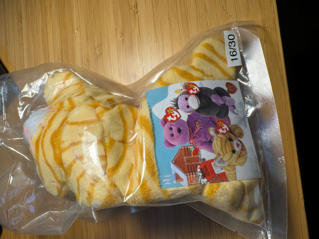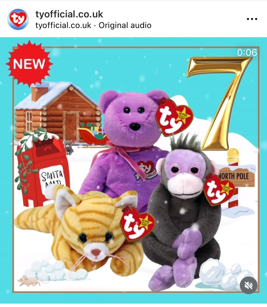 Set 6/Series 6 of the 30th pieces. Given away entirely by Ty UK contest in December 2023. We have Bananas II, Amber II, and Celebrate II. Like with series 4 and 5, these were entirely distributed via Ty social media. Particular contests around the holiday – a few pieces went out as sets of three, and, in Amber’s case, we had dog and cat specific contests.