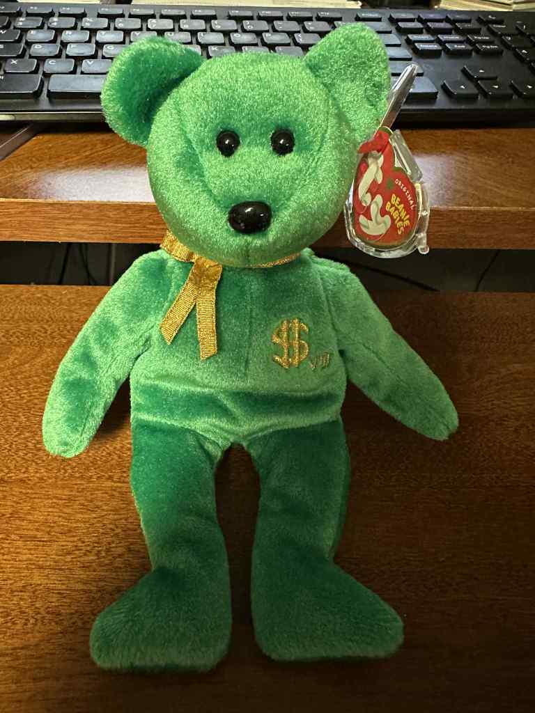Even 30 years after the beanie line’s release, rare pieces are still surfacing. This is the beauty with almost every one of Ty’s different plush lines – the sheer number of variations discovered, and variations conjectured to exist that still have yet to surface – keep the hunt going all these years later. The plush line is the original example of this Ty trend – definitely check out the Ty Plush Archive, the best resource for Ty plush and Attic Treasures. While we have a number of draft articles to publish, we pushed this to the front of the line. This piece fits into our “#1 in a series” portfolio. Feast your eyes on the #1 Billionaire 8 bear! This piece surfaced only recently from Ty – absolutely untouched and never seen by the collecting community prior to this point! More photos to come soon. But what a marvel.