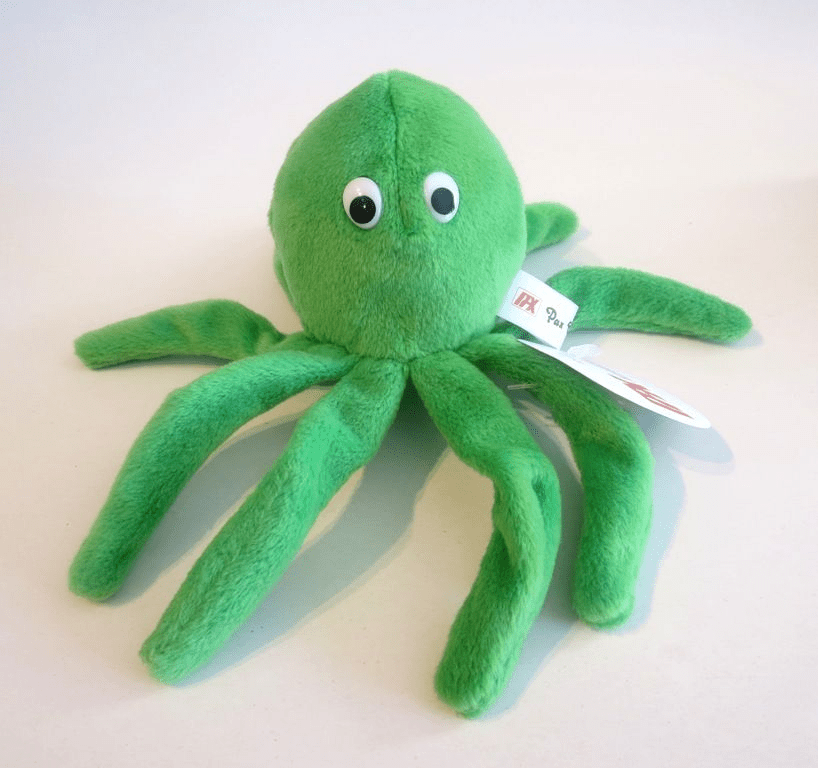 This is the 3rd and final Inky the Octopus prototype that has surfaced externally from Ty Inc. It is actually the middle in terms of age/style development and transition. Recall the original Inky was released in tan with no mouth, then gained a mouth (still tan), and then finally evolved to its pink color with mouth. We have already reviewed a solid green example with no mouth (1992 pax dates), and an example similar to this one in tan and pink (early 1994 pax dates). This guy has a solid white head, mouth, and tan legs, with early 1993 pax dates! Inky transitioned to tan with mouth on 9/12/94 – only a few months after the non mouth version was released in June of 1994. Below we have pictured all three examples.