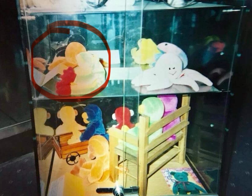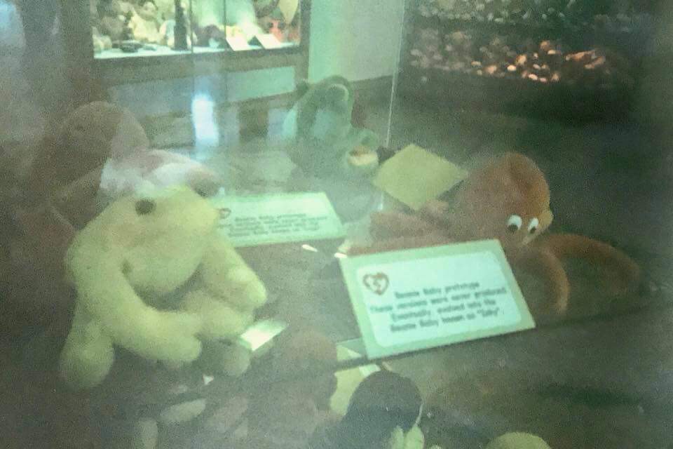 Fun fact, there were other Inky prototypes at the Tyriffic Store including a solid orange example with no mouth (similar to the original solid green example with no mouth). A picture of this orange Inky has survived and is below! There also appears to be a production Inky with mouth on display as too – but perhaps it is an alternate shade of fabric. We know for Ty’s original 1st gen pieces especially, Ty created full color departures using the 10-20 shades of fabric encompassing his original releases!