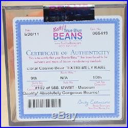 Note: The production rankings created on the RarestBeans blog do not line up with comments used by graders on their grading certificates. A piece may be graded by True Blue Beans as “Ultra Rare” or “Extremely Rare”, but that does not mean those pieces necessarily fall into the respective Rarestbeans rarity categories. E.g. the graded Coral Casino example above has been called “extremely rare” by TBB. But with our rarestbeans ranking system, we would put this piece into the “ultra rare” category. The superlatives used by TBB and other services add a very nice touch, but are generally not universally applied or consistent, or meant to put a graded piece into a category. Sometimes a piece, say Coral Casino, is graded as “Ultra Rare” or “Extremely Rare”, causing some confusion. The goal here is place pieces into rarity categories based on population numbers for that piece.
