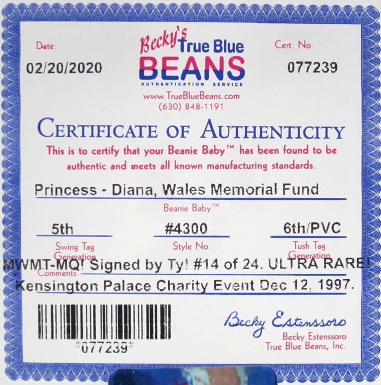 This page is designed to implement a holistic rarity ranking system to stratify all production pieces (anything issued with production hang/tush tags/NOT a prototype or sample piece) into a single rarity ranking system. These include pieces retailers could order, pieces sent out by Ty, pieces given to employees/sales reps/executives, and pieces made for special events/individuals. This EXCLUDES any piece not classified as its own separate style, or with any difference to the beanie/its hang tag. For example – sports exclusives with separate commemorative card, Japanese commemoratives (with beanie adorned in outfits post original release, etc.), one-off signed personal pieces. Exceptions made for some Ty pieces officially signed/numbered by Ty/Ty Inc. for special promotions or contests. Particularly if that signed piece is classified by graders/Ty Inc. as a specific ‘version’. Example that this site will cover – The Memorial Princess. Something we likely would not cover – a piece someone had signed by Ty at a public function.